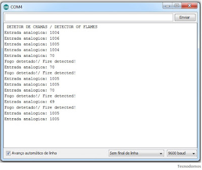 Serial.println(" DETETOR DE CHAMAS / DETECTOR OF FLAMES");