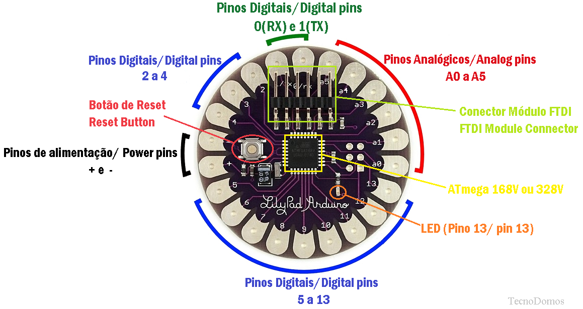 O ATmega168V ou ATmega328V no Arduino LilyPad encontram-se pré-programados com bootloader o que nos permite carregar novos códigos para este sem se recorrer a um programador de hardware externo.