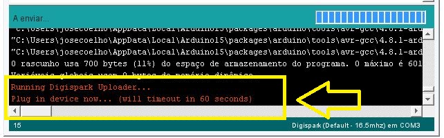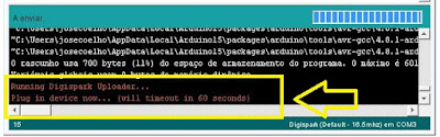 Na sequência de imagens anterior podemos observar na imagem 3 a forma como o programa é transferido para a nossa placa ATtiny85.